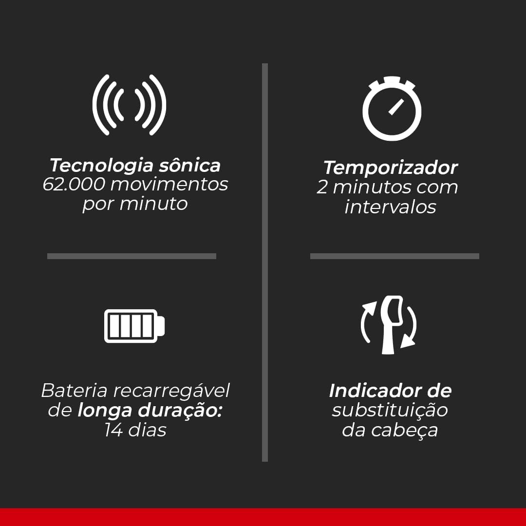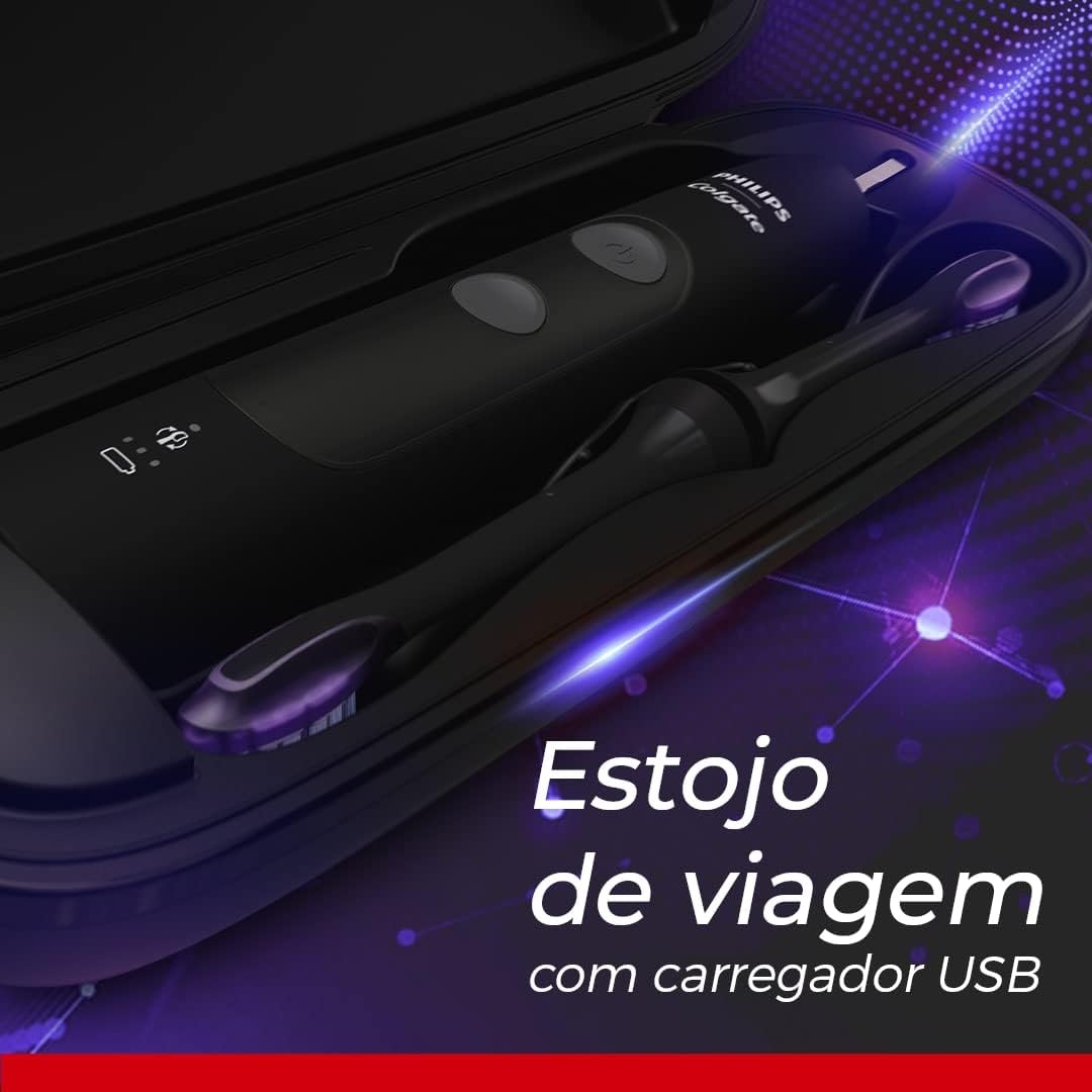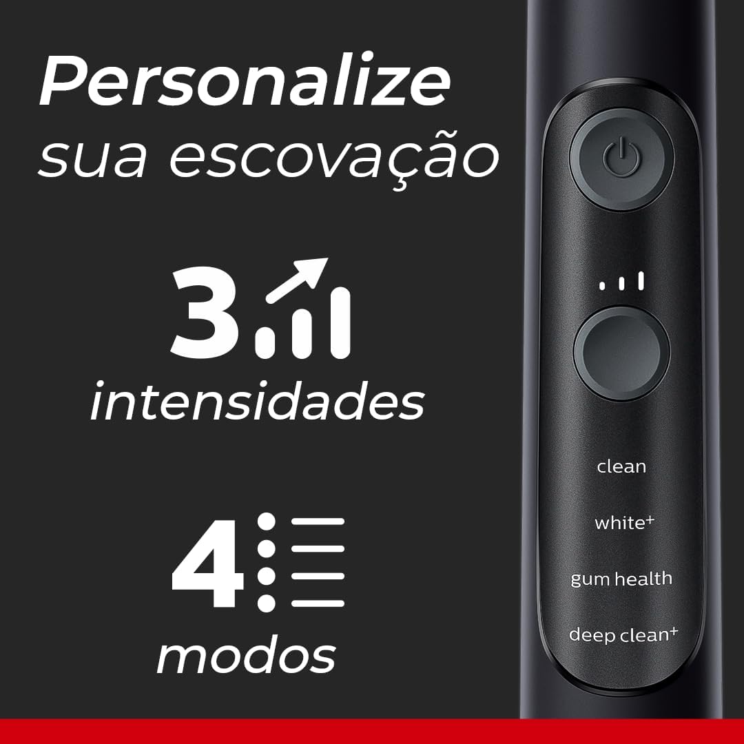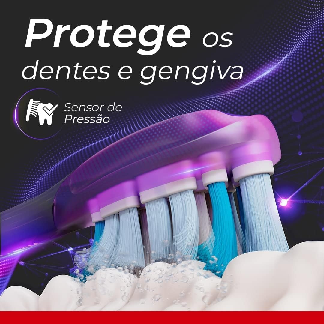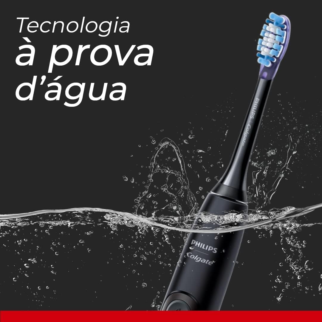 A Escova de Dente Elétrica Philips Colgate Sonic Pro 70 remove 900% mais placa do que uma escova manual enquanto protege os dentes e a gengiva graças ao sensor de pressão. Em duas semanas pode reduzir até 100% a gengiva inflamada no modo Saúde da Gengiva (Gum Health) e também ajuda a prevenir a gengiva retraída e os primeiros sinais de gengivite. Você sabia que uma escova de dente elétrica ajuda a potencializar os benefícios do creme dental para dentes sensíveis ou creme dental clareador? SENSIBILIDADE NOS DENTES: Se procura aliviar a sensibilidade dentária, está clinicamente comprovado que o uso desta escova dental elétrica com a pasta de dentes Colgate Sensitive Pro Relief com arginina, alivia instantaneamente a hipersensibilidade dentinária. CLAREAMENTO DENTAL: Use com Colgate Luminous White Lovers para maximizar os resultados e obter dentes mais brancos rapidamente.