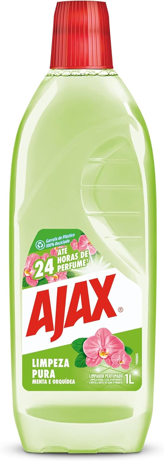 O Limpador Ajax Limpeza Pura Menta e Orquídea limpa profundamente removendo facilmente as sujeiras e as manchas de gordura mais difíceis e deixa um agradável perfume floral, que dura até 24 horas.