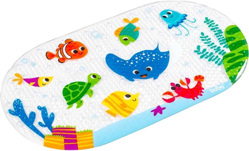 O Tapete para Banho Fundo do Mar da Buba vai tornar a hora do banho mais segura. Com múltiplas ventosas, é ideal para evitar que a criança escorregue.