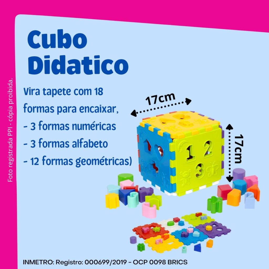 Brinquedo educativo cubo didático com blocos