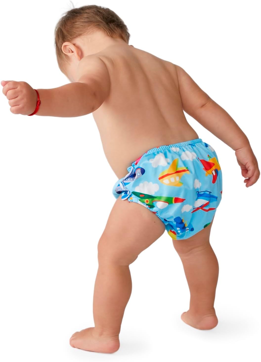 As fraldas possuem proteção UV 50+Podem ser lavadas na máquina sem prejuízo nenhum à peçaPossuem camada absorvente internaFechamento lateral com botões, fácil de por e tirarTemos diversas estampas de meninos e meninas para você escolher!