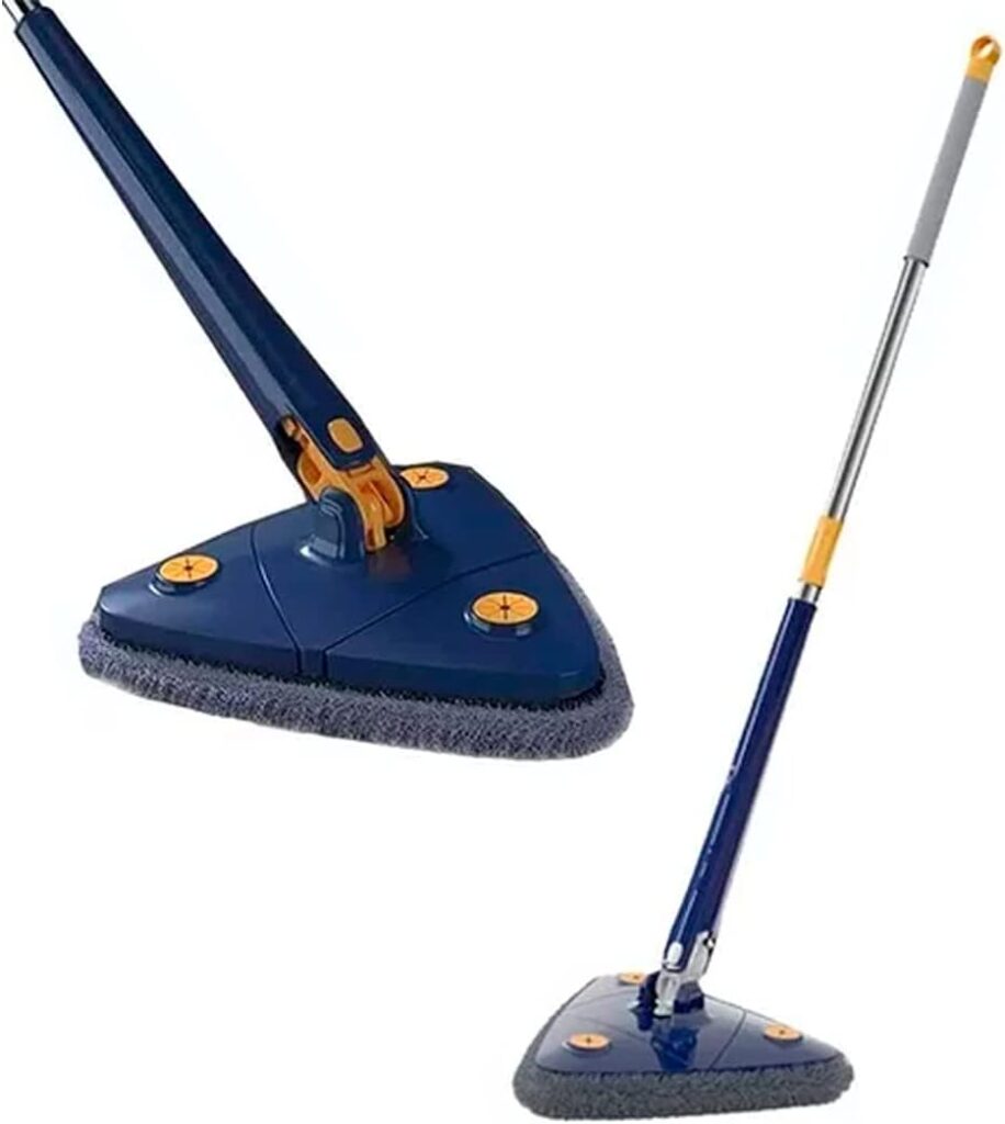 > DESCRIÇÃO DO PRODUTO: Torne a limpeza de sua casa mais fácil e sem dores nas costas no fim do dia!! > PRINCIPAIS FUNÇÕES DO PRODUTO: -Pode ser usado molhado ou seco, podendo ainda absorver água rapidamente em questão de segundos; -Fácil acesso às paredes e tetos, mantém uma limpeza mais rápida segura e segura; -Perfeito para limpar vidros, pisos de sofá, paredes, fendas, cantos, carros e muitos outros lugares; -O formato triangular do esfregão giratório 360° não deixa poeira em seus cantos mortos e resolve facilmente a poeira teimosa dos cantos; > DESCRIÇÃO TÉCNICA: -Material: Cabo Em Aço Inox E Esfregão Em Microfibra; -Tamanho do produto (CxAxL): 50 cm x 25 cm x 8 cm; -Tamanho do produto com embalagem (CxAxL): 54 cm x 26 cm x 10 cm; -Cor: Azul ou Branco (sortido); -Peso do produto: 700g; -Peso do produto com embalagem: 713g. > O QUE ACOMPANHA: 01 x Esfregão Triangular Extensível Com Rotação De 360 Graus. 01 x Pastilha De Esfregão. 01 x Embalagem Plástica. > MODO DE USAR: 1º – Varra antes todo o cômodo com o esfregão seco; 2º – Em um balde, coloque água e o produto de limpeza da sua escolha; 3º – Molhe o esfregão no balde e torça-o bem; 4º – Escolha um sentido para fazer a limpeza do piso e use o esfregão no chão, com movimentos de vai e vem nos cantos e área geral. > CUIDADOS AO UTILIZAR: *Mantenha a parte do esfregão de microfibra em lugar arejado para secagem completa após utilização. **Deixe fora do alcance de crianças, o item não é um brinquedo. O disco de limpeza do esfregão tem um design triangular ergonômico com cabeçote giratório de 360°, permitindo que você se livre de vez aquela poeira teimosa acumulada em cantos, nos tetos e janelas do ambiente doméstico. O produto atende a limpeza úmida ou à seco, garantindo facilidade de torção sem prejudicar sua coluna. Com a eficaz absorção de água e remoção de manchas pelo esfregão almofadado, o produto limpa e remove manchas de áreas altas ou baixas sem a necessidade de escadas ou curvar-se para baixo, ideal para pisos de vinil, madeira ou porcelanato. O formato triangular do esfregão giratório 360° não deixa poeira em seus cantos mortos e resolve facilmente a poeira teimosa dos cantos. Não há necessidade de espremer manualmente a água ao esfregar o chão, basta puxar a haste do esfregão para espremer facilmente. Pode ser usado molhado ou seco, podendo ainda absorver água rapidamente em questão de segundos